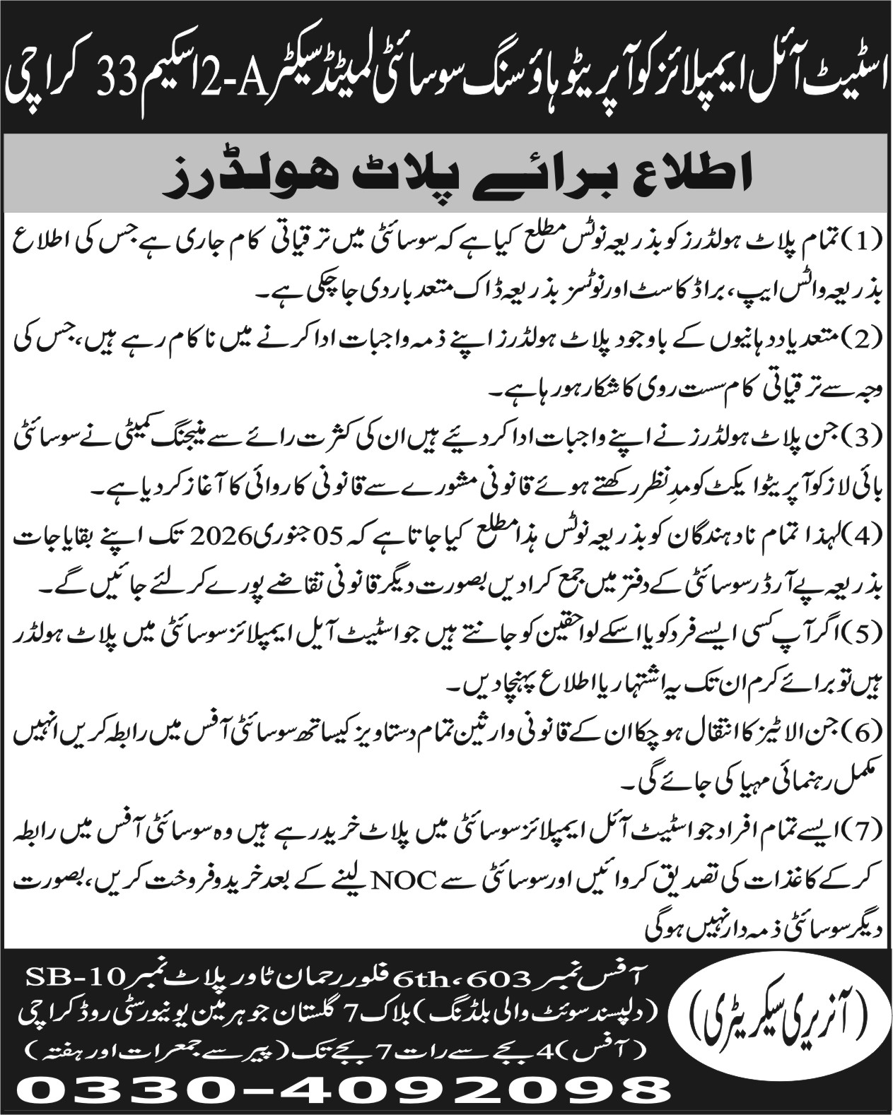 State Oil Employees Cooperative Housing Society (SOECHS) is a warm and inclusive community strategically located in the heart of Karachi, catering to the housing needs of both State Oil employees and residents of Karachi. Our society is committed to providing quality housing solutions that offer comfort, security, and a profound sense of belonging.